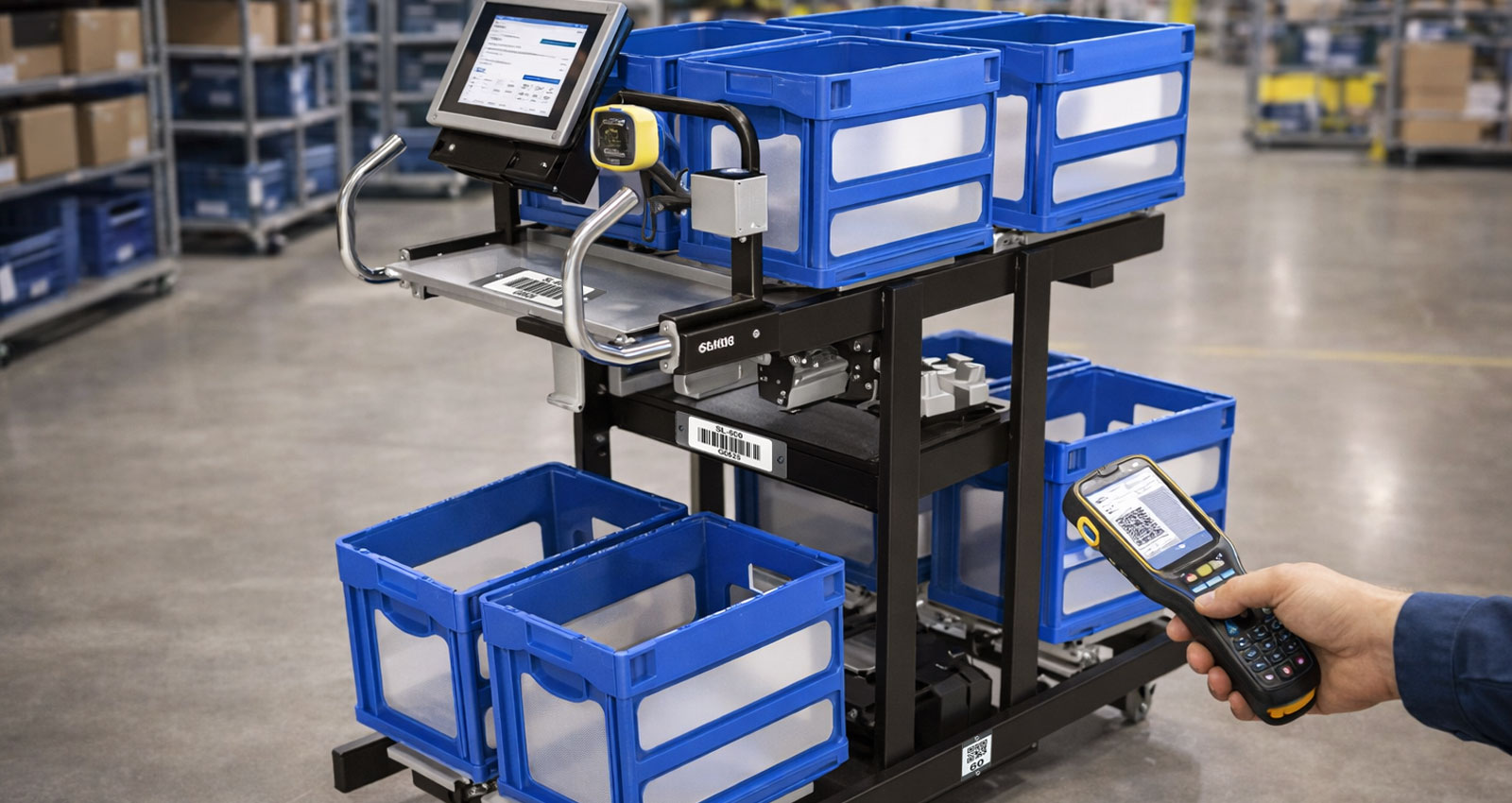 In an in-plant logistics control system developed by a transportation equipment manufacturer for a customer facility, barcode labels were required for identifying picking carts.
