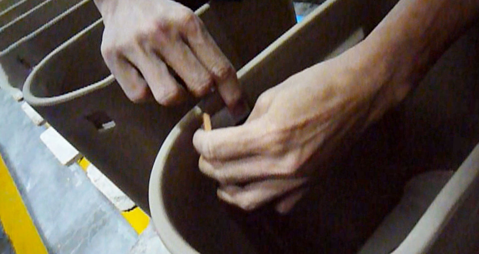 Sanitary ceramics are kiln-fired products that undergo long-duration firing at temperatures of around 1,200°C after forming.
